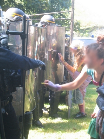 [11] Avec la généralisation des téléphones portables intégrant la fonction photo ou vidéo, les manifestants témoignent de plus en plus régulièrement, par le biais d’internet, des violences policières qu’ils ont subies. Par exemple, dans le cadre des manifestations menées en marge du sommet dit "de l’intégration" à Vichy (novembre 2008), ou en opposition à l’Otan à Strasbourg (avril 2009), les médias ont largement rapporté et grossi la casse occasionnée par les manifestants. Fort peu des provocations et des violences policières, qui n’ont pourtant pas cessé aux dires de nombreux participants et témoins. Certains ont publié des vidéos pour montrer et dénoncer les agressions passées sous silence. Voir par exemple cette vidéo enregistrée par un(e) participant(e) à la manifestation de Strasbourg et postée sur Youtube. On y entend distinctement les manifestants demander aux forces de l’ordre d’arrêter de leur jeter des pierres et de garder leur calme : http://www.youtube.com/watch?v=1UIEYkTWf80