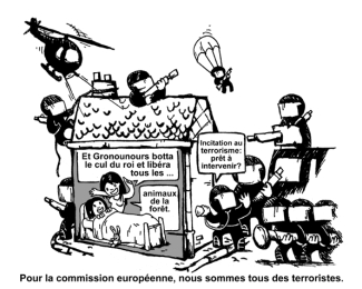 Suite au choc des attentats du 11 septembre 2001, les pays membres de l’Union Européenne, emboitant le pas aux Etats-Unis, ont renforcé leur arsenal "antiterroriste" en adoptant des lois liberticides [15], qui ont notamment permis à la police d’arrêter dans la plus grande brutalité et à la justice de maintenir en détention pendant plusieurs semaines ou plusieurs mois des personnes, non sur base de faits mais en fonction de leurs convictions politiques, de leur engagement militant ou simplement de façon de vivre ou de leurs amitiés [16]. Mais dans un cadre légal, ces violences sont couvertes : il s’agit de lutter contre la "menace terroriste".
