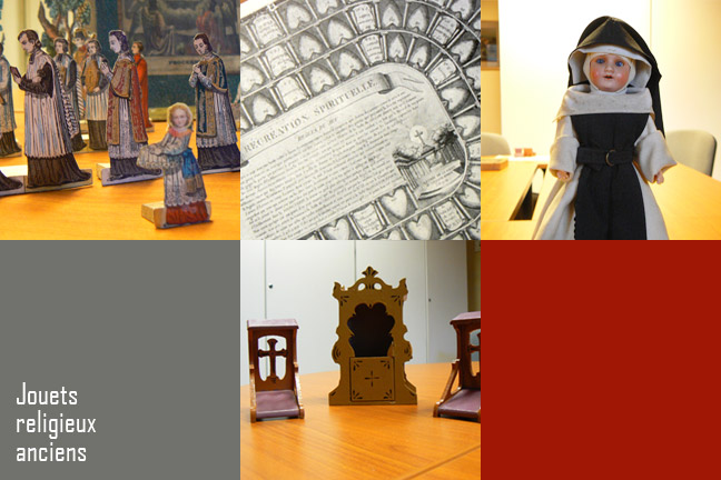 Oui. Il faut savoir qu’au XIXième siècle, dans nos régions, le jouet le plus courant était le jouet religieux : la petite église, le confessionnal, les petits calices, le jeu de la procession etc. Pourquoi ? Parce que parmi les valeurs très importantes que les parents voulaient transmettre à leurs enfants à cette époque, il y avaient la piété, le sens religieux. En outre, à travers ces jeux, les parents espéraient peut-être que l’enfant se découvrirait une vocation de prêtre ou de religieuse, ce qui était bien vu à l’époque dans une famille.