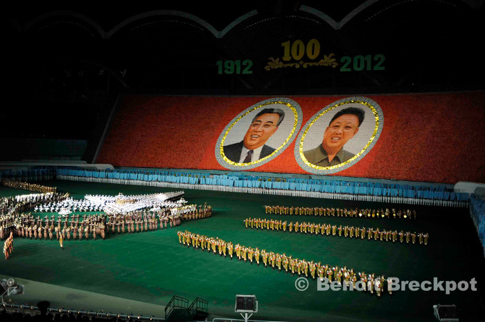 Le lendemain matin, après un petit déjeuner continental, nous sommes conduits, en car, sur les lieux de visites bien déterminés : une ferme bien sous tous rapports, une immense statue en bronze représentant le Grand Leader menant les fermiers héroïques devant laquelle nous sommes appelés à nous prosterner, le grand barrage construit par Kim Jong-il, l’immense Arc de Triomphe situé au coeur de Pyongyang, le métro dont nous ne verrons que deux stations de propagande, la « Juche Tower » représentant la perfection et la grandeur du Leader et, pour terminer cette première et intense journée de route, la visite d’une école où les enfants-robots sont plus-que-parfaits . Leurs dessins, l’interprétation de morceaux de musique, les sculptures, les gravures et le spectacle proposé sont millimétrés. Nous restons tétanisés, et le mot est faible, à la vue du spectacle de ces enfants si bien drillés. Pas le droit à l’erreur.