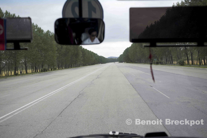 L’absence de voiture ou d’autres véhicules motorisés est frappante. Il nous arrive de prendre l’autoroute, de rouler plusieurs heures, sans croiser aucune voiture. Les quelques véhicules autorisés à se déplacer sont ceux appartenant aux cadres dirigeants, roulant à toute allure sur des routes en mauvais état et balayées, oui balayées (!) par les habitants. Les bords des routes sont longés par des travailleurs, des charrues et des bêtes bien chargées. Et leur destination nous est inconnue. Nos questions au guide restant, majoritairement, sans réponses.